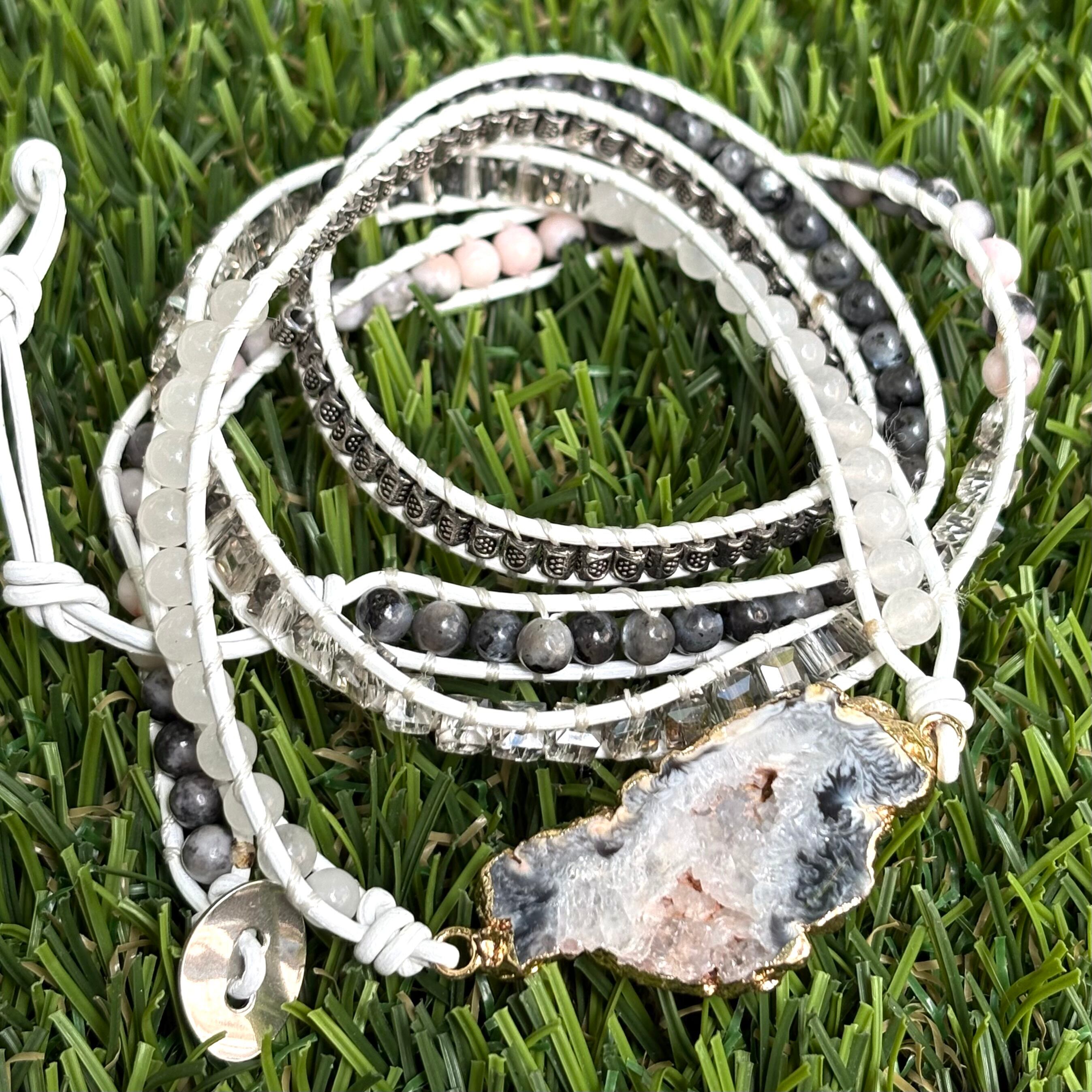(ブレスレット部分にも天然石や金属チャームがついています)