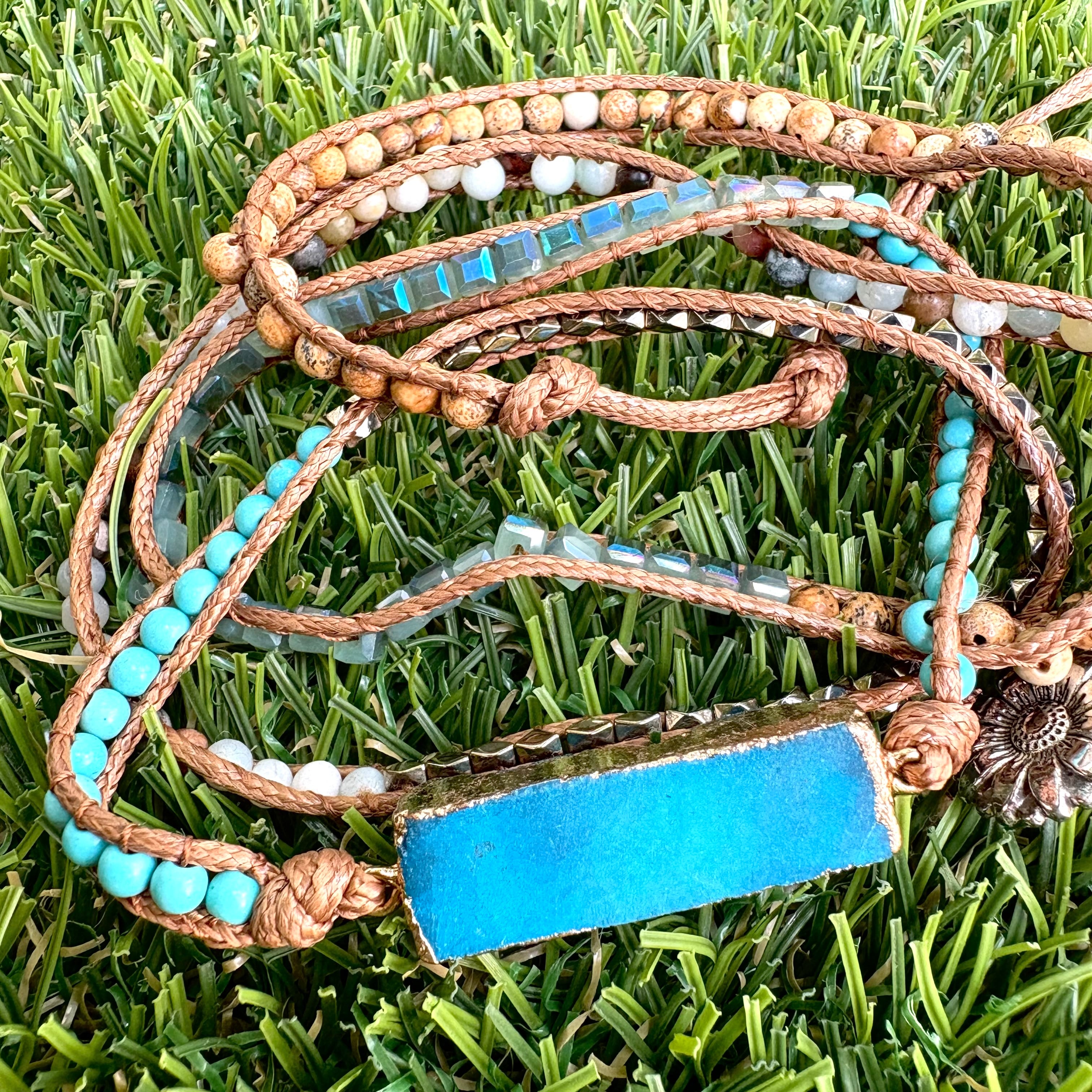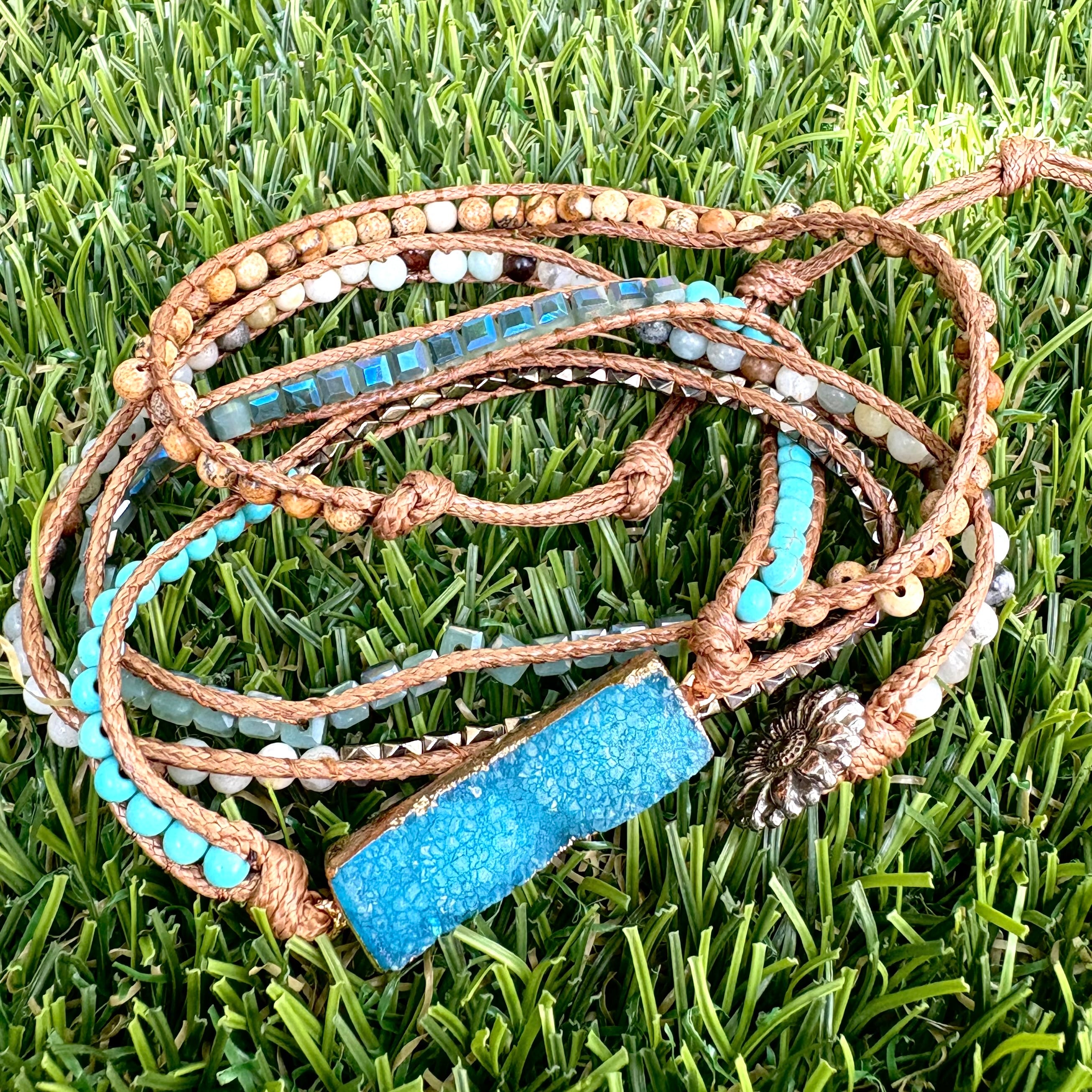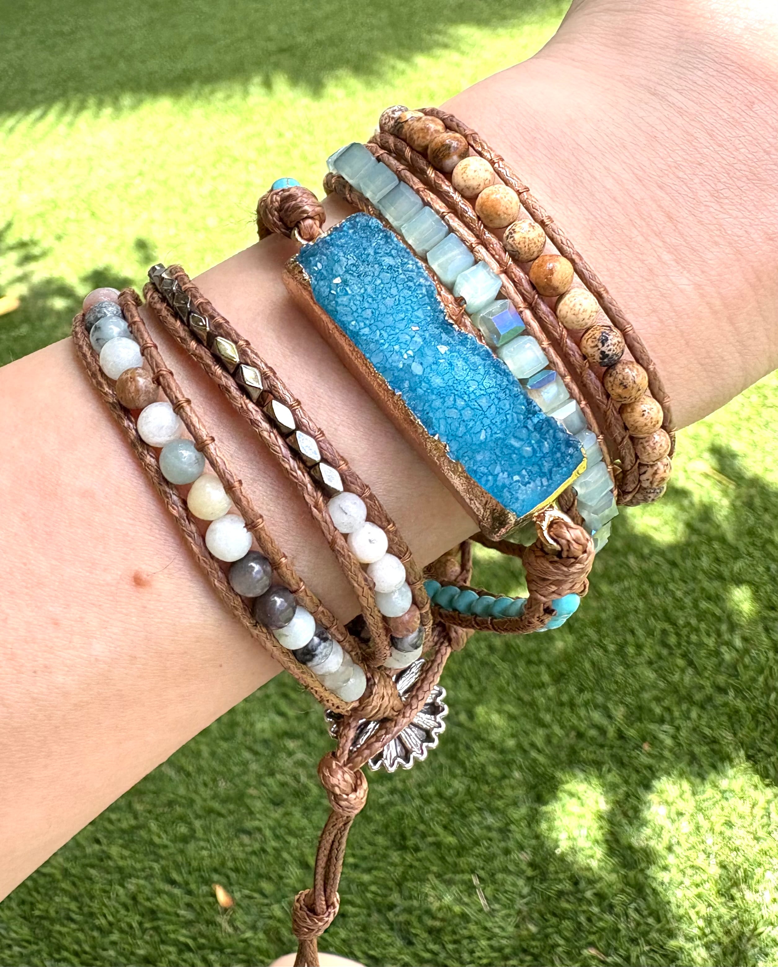 天然石のAgateアゲート・ドゥルージーのラップブレスレットです。